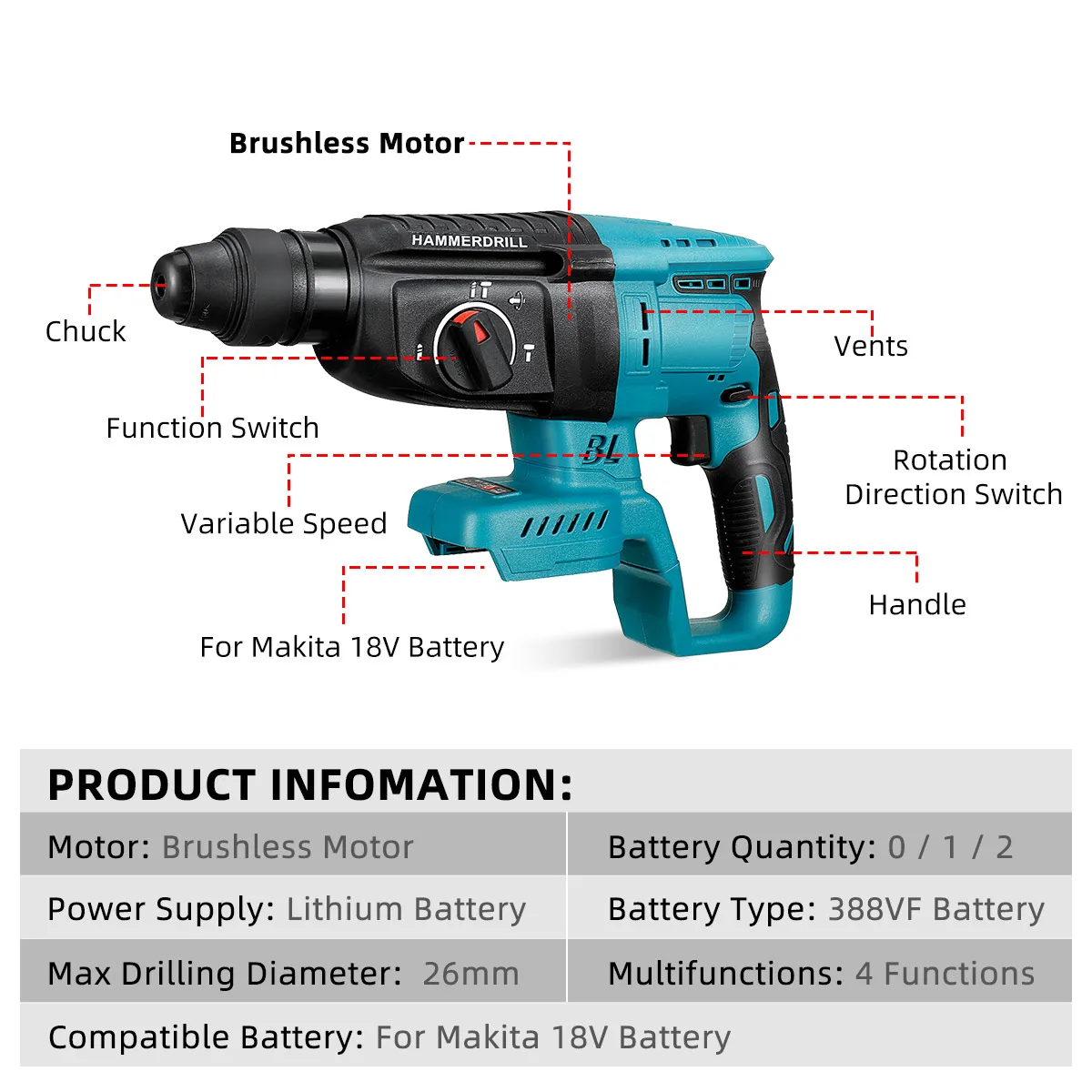 ราคาถูกและส่วนลด Dillpro ไร้สายไร้สายโรตารี่ค้อนมัลติฟังก์ชั่ไฟฟ้าค้อนสว่านกระแทก Makita 18V แบตเตอรี่ ซื้อโดยตรงจากผู้ขาย Engraving-Machines Store เพลิดเพลินกับการจัดส่งฟรีทั่วโลก! ✓90วันคุ้มครองผู้ซื้อ ✓กลับง่าย ✓รับประกันคืนเงิน